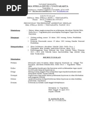 By ruslan 04:41 4 comments. Akreditasi sekolah adalah kegiatan penilaian oleh pemerintah dan/atau lembaga mandiri . Perangkat akreditasi sd mi smp mts sma ma smk. Sma stella duce 1 yogyakarta tahun 2013. Sk tim persiapan akreditasi sekolah sdmi tahun pelajaran 20182019 ini adalah salah satu contoh surat keputusan pembagian tugas dalam hal .